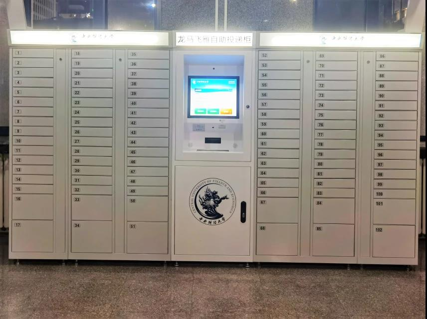 沙河校区的自助投递柜设在大学生活动中心一层师生事务服务大厅门口,南路校区的龙马飞雁自助投递柜设立在办公楼一层大厅,两校区各有102个存件柜,分为大、中、小三种尺寸类型,24小时全天候服务,完全满足师生收寄常见文件类快递的需要!
