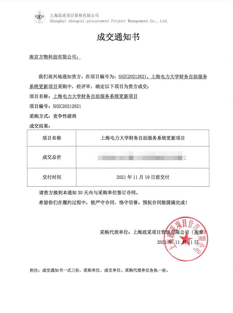 喜讯:我司中标《上海电力大学财务自助服务系统更新项目》
